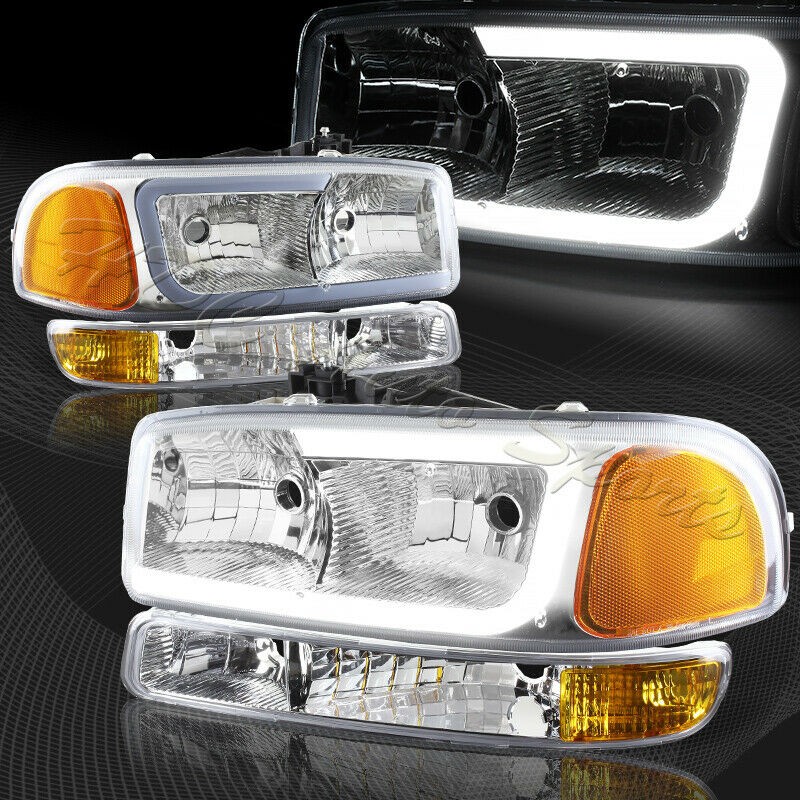 NEW C BAR HALO CHROME HEADLIGHTS AMBER 1999-2006 GMC SIERRA YUKON COMBO TOP AND BOTTOM