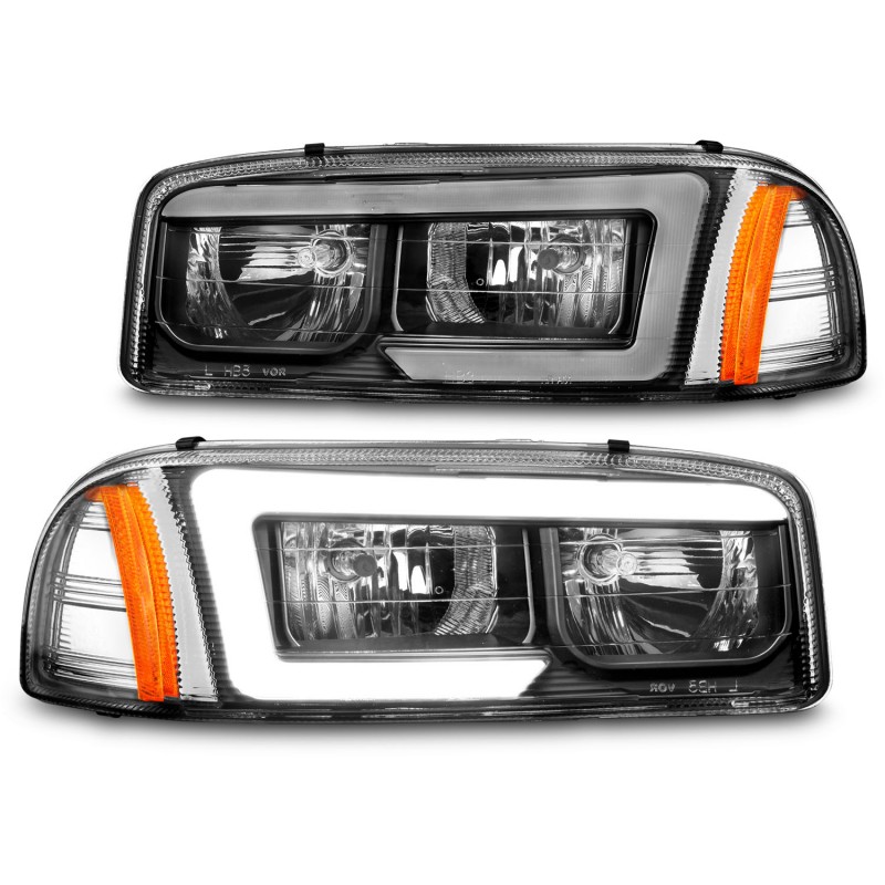 1999-2006 GMC SIERRA YUKON C BAR HALO BLACK HOUSING HEADLIGHTS