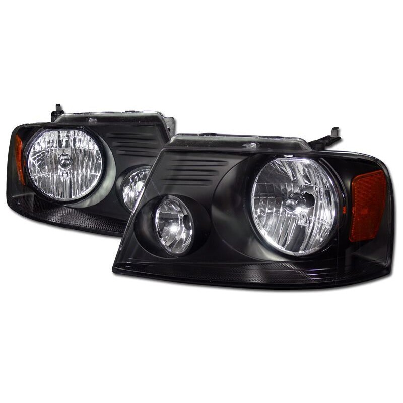 2004-2008 FORD F150 BLACK AMBER HOUSING HEADLIGHTS PAIR