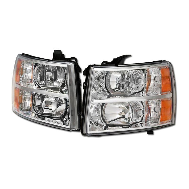 2007-2013 CHEVY SILVERADO 1500/2500/3500 CHROME AMBER HEADLIGHTS OE STYLE PAIR
