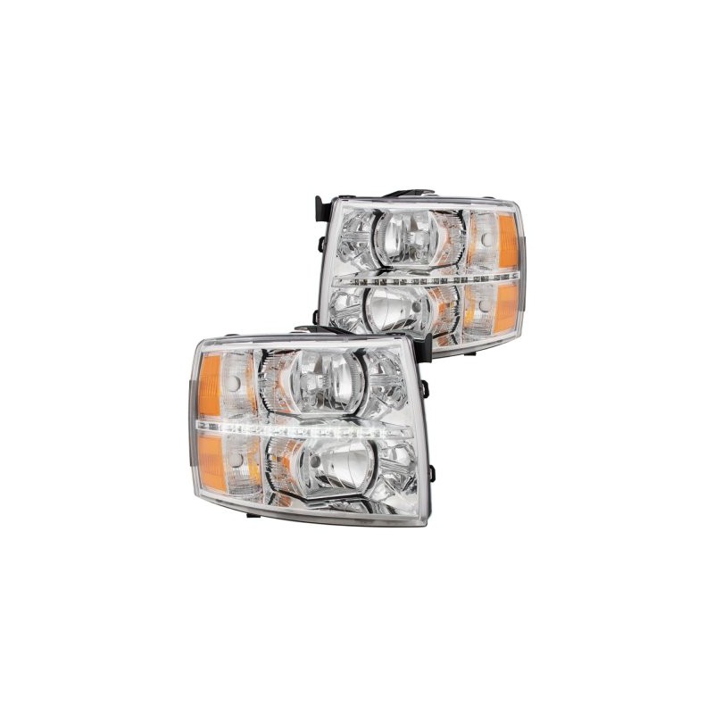 2007-2013 CHEVY SILVERADO CHROME AMBER WITH LED STRIP HEADLIGHTS