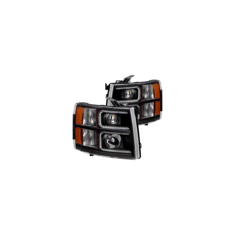 2007-2013 Chevy Silverado 1500 2500 C bar halo projector headlights black housing