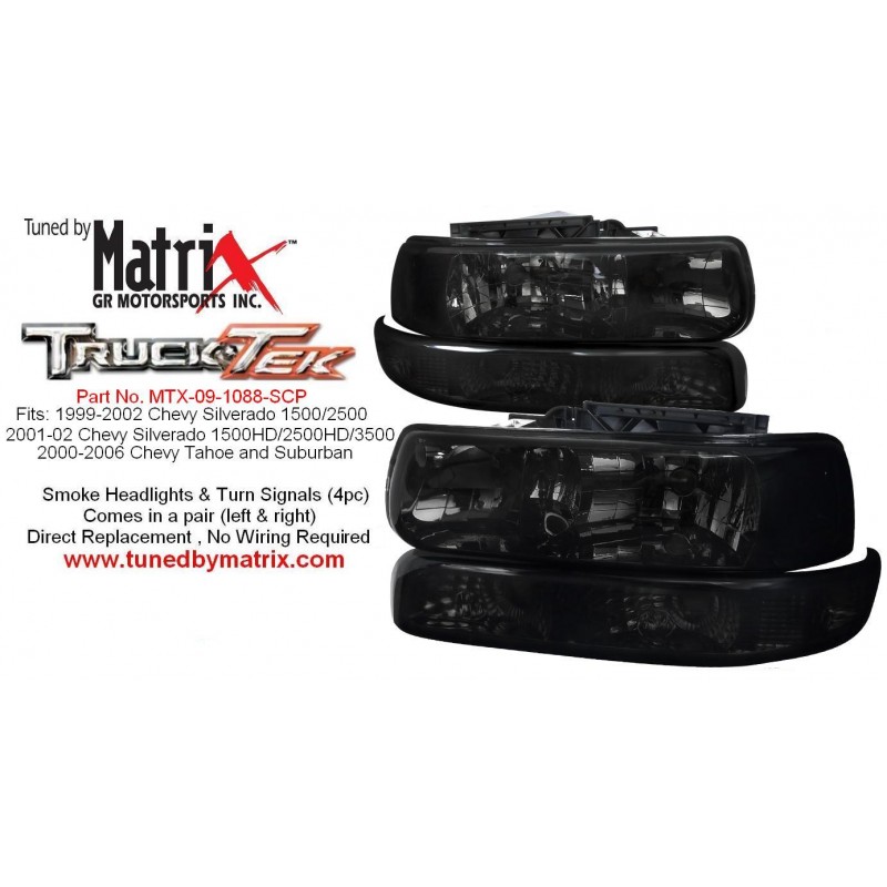 Smoke Headlamps 1999-2002 Chevy Silverado Tahoe 00-06 Suburban