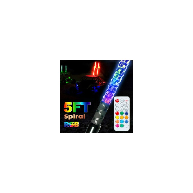 LED RGB MULTICOLOR DANCING SPIRAL WHIP ANTENNA 5FT WITH REMOTE