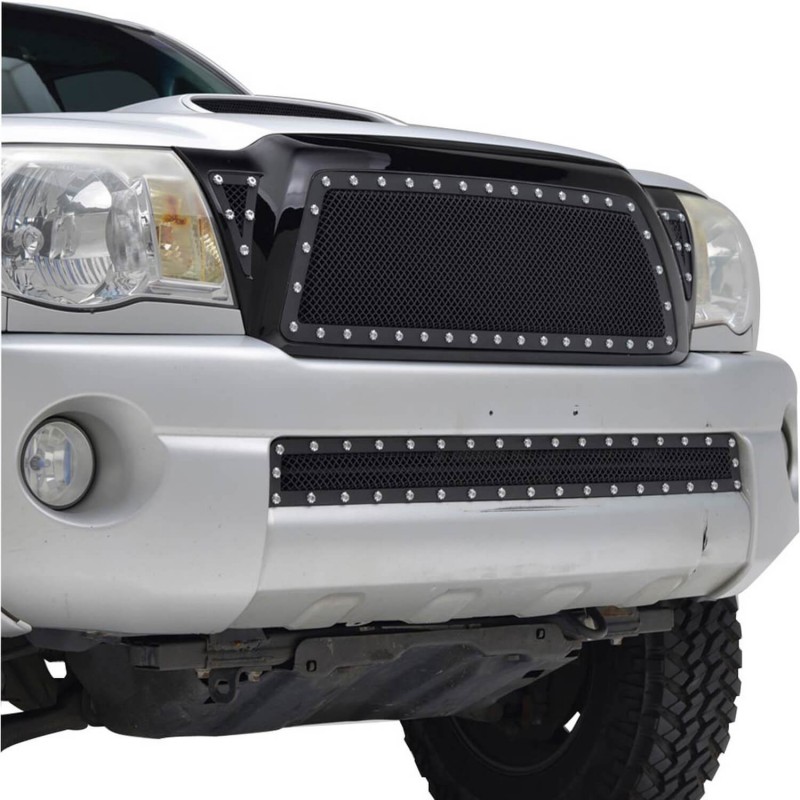 2005-2011 fits TOYOTA TACOMA STAINLESS BLACK MESH GRILLE REPLACEMENT WITH RIVETS