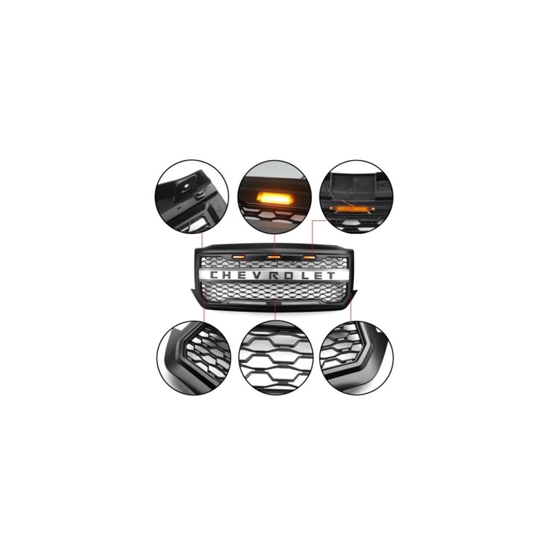 New Chevy Silverado 1500 2016-2018 black mash grille with led running lights and logo replacement