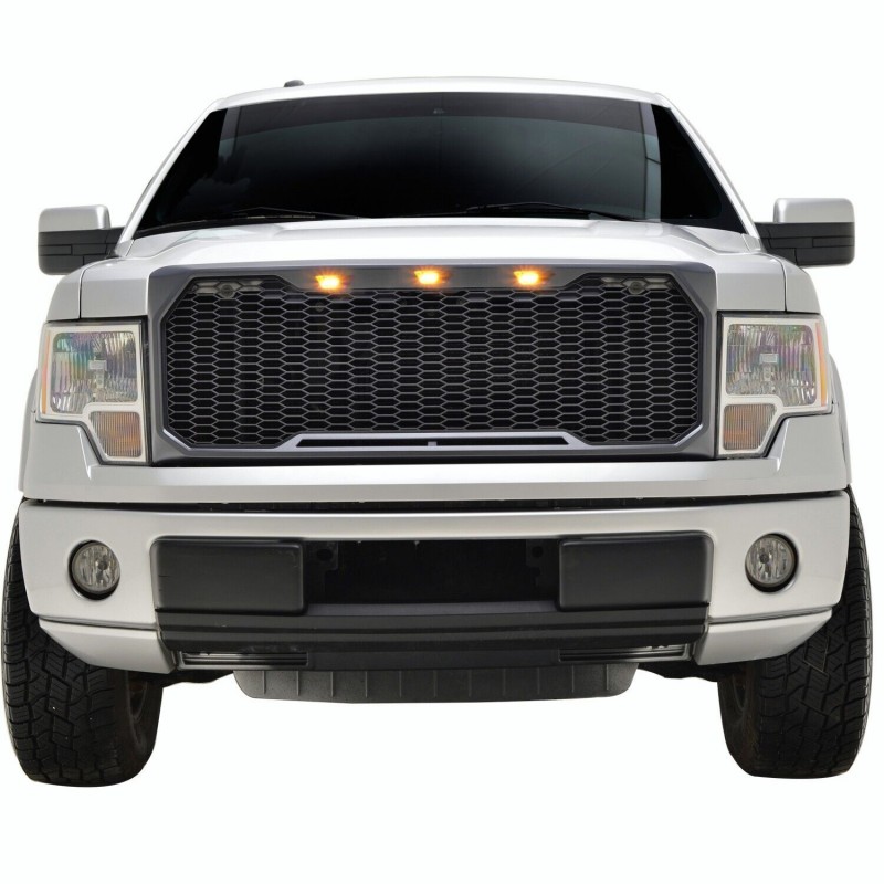 new mesh style grille 2009-2014 ford f150 with led amber lights drl full replacement