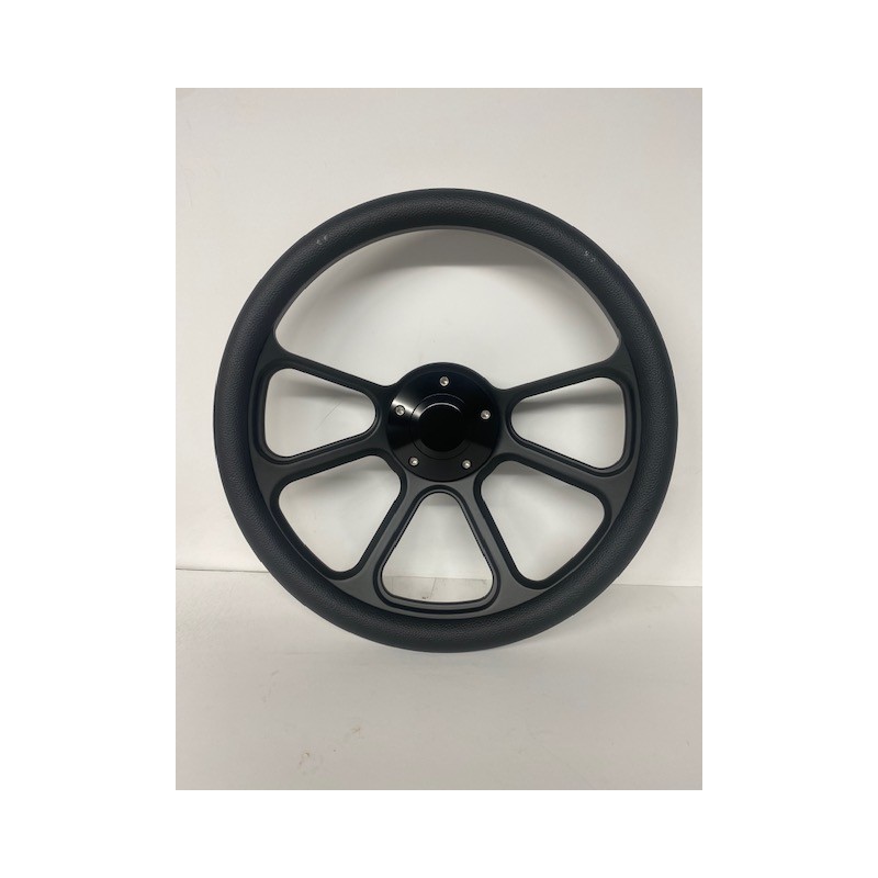 BLACK BILLET STEERING WHEEL 3 SPOKE WITH BLACK VINYL WRAP 14" UNIVERSAL