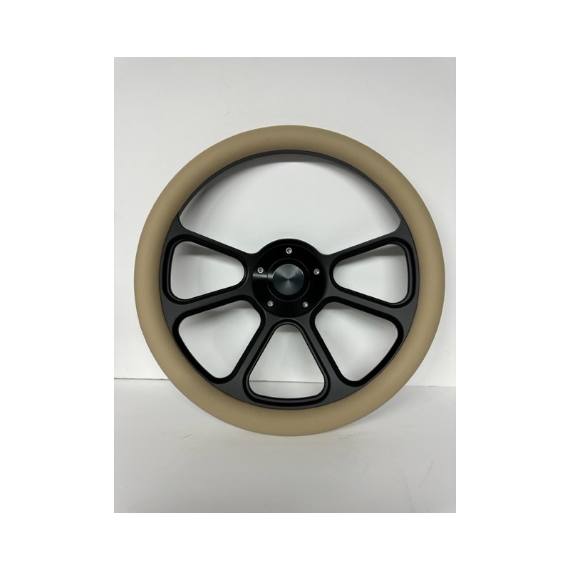 BILLET BLACK STEERING WHEEL WITH TAN WRAP UNIVERSAL 6 HOLE