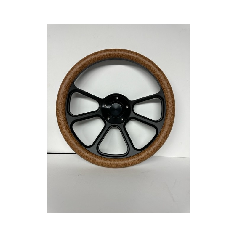 BILLET BLACK 3 SPOKE KAKI BROWN WRAP STEERING WHEEL UNIVERSAL 6 HOLE