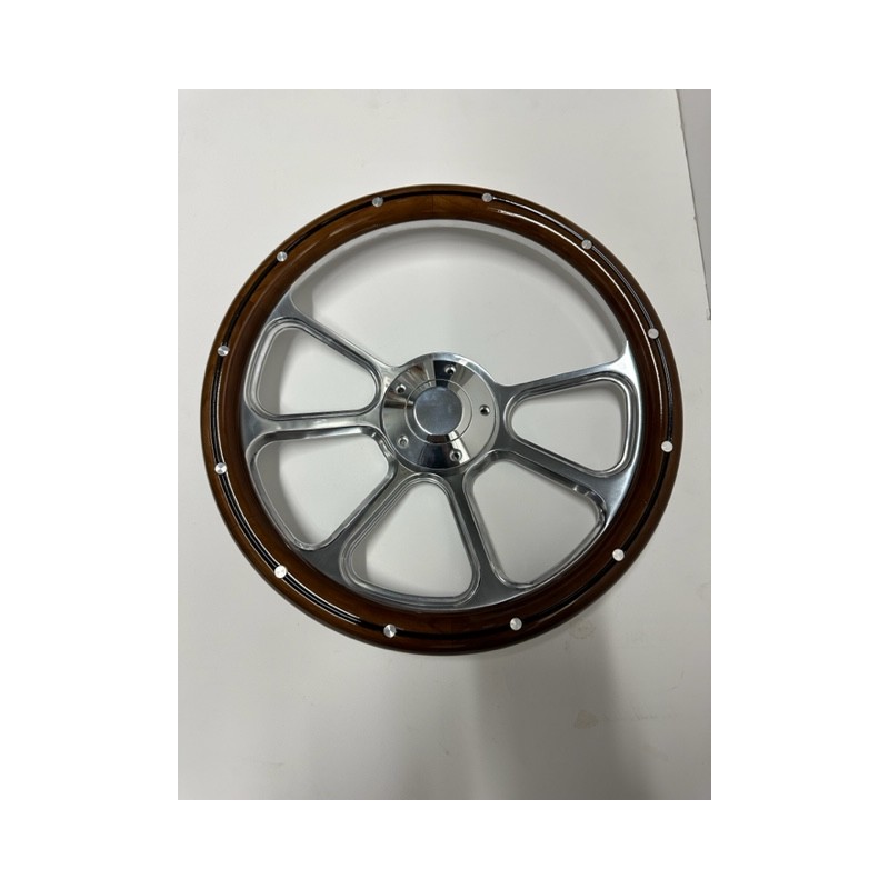 POLISH BILLET STEERING WHEEL 5 HOLE WITH WOOD WRAP 14" UNIVERSAL