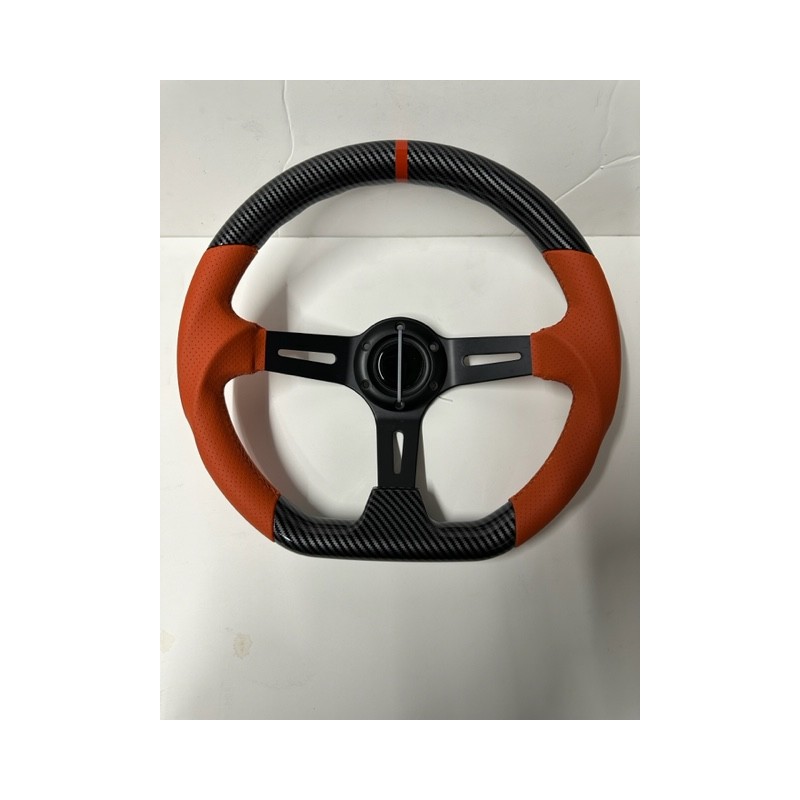 UNIVERSAL D SHAPE STEERING WHEEL ORANGE BLACK 14" DEEP DISH