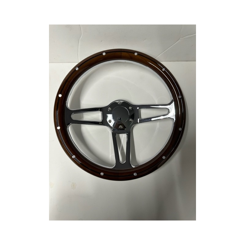 UNIERSAL WOOD 3 SPOKE CHROME STEERING WHEEL 14" 6 HOLE