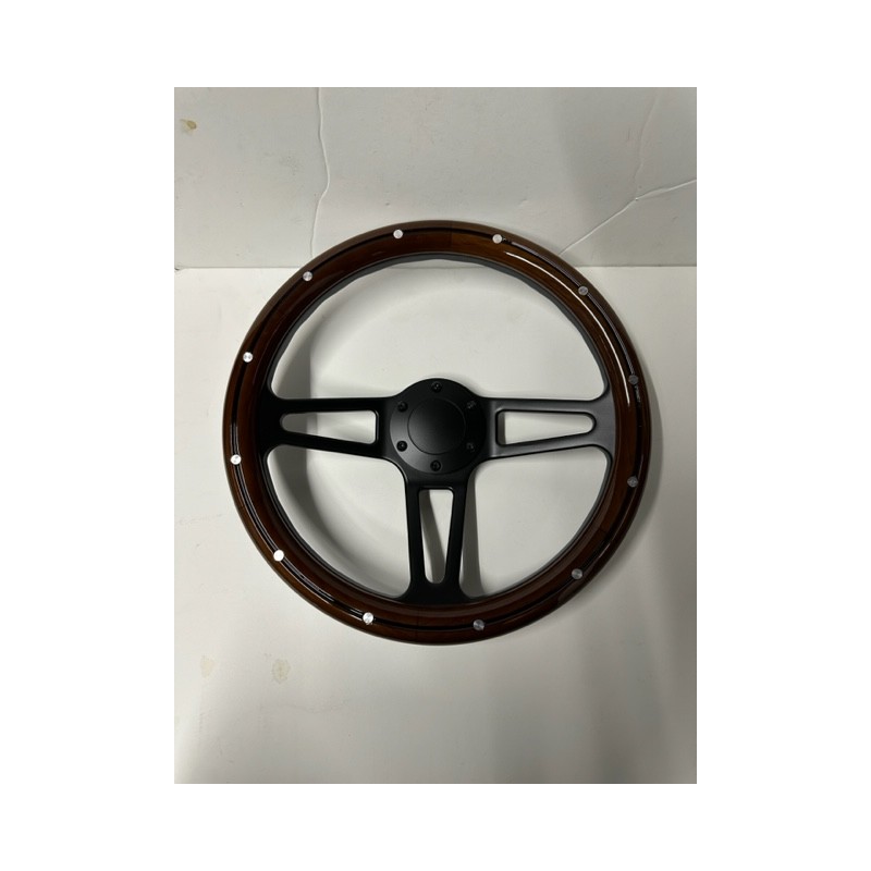 UNIVERSAL WOOD 3 SPOKE SPLIT BLACK STEERING WHEEL 6 HOLE