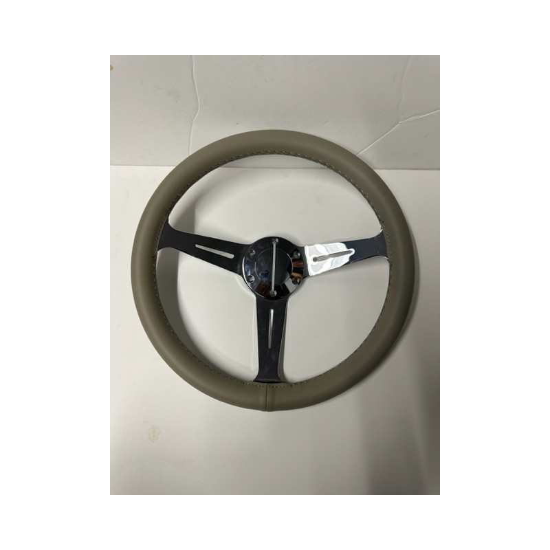 LEATHER GREY 3 SPOKE CHROME STEERING WHEEL 14" 6 HOLE