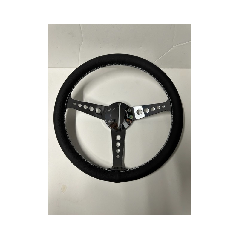 LEATHER BLACK 3 SPOKE HOLES CHROME UNIVERSAL STEERING WHEEL