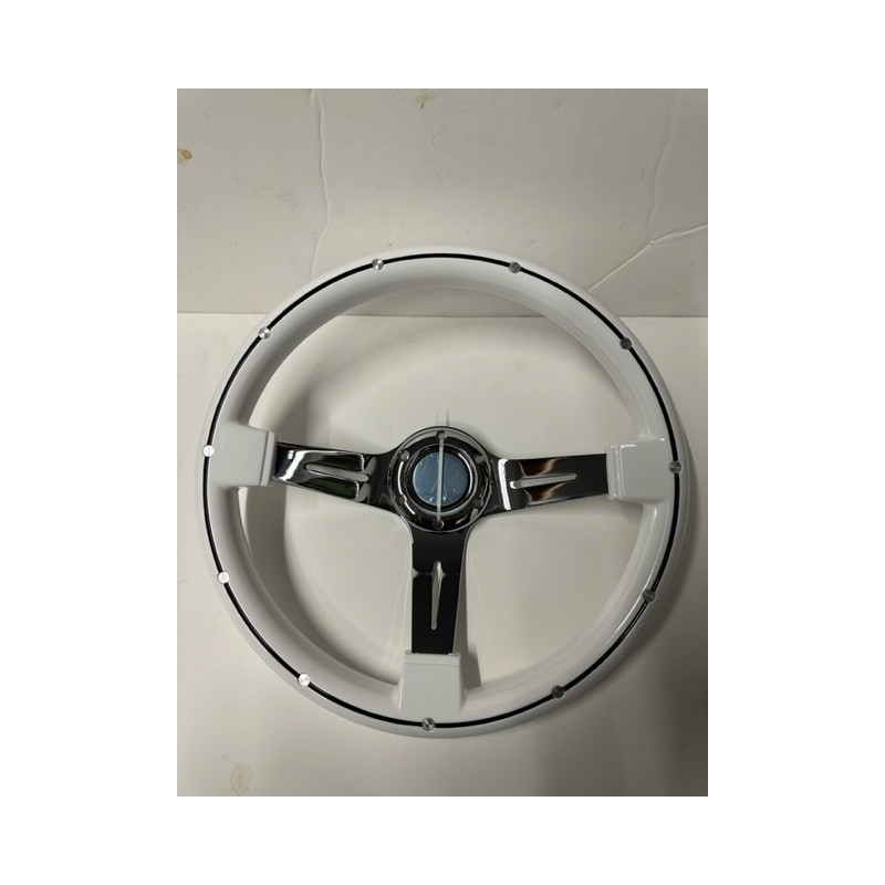 WHITE UNIVERSAL STEERING WHEEL 3 SPOKE CHROME WITH BLACK STRIPES