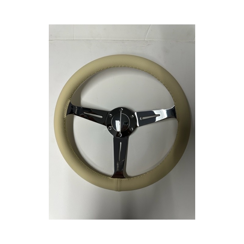 LEATHER TAN 3 SPOKE CHROME STEERING WHEEL UNIVERSAL