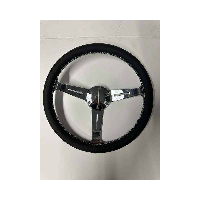 LEATHER BLACK 3 SPOKE SPLIT UNIVERSAL STEERING WHEEL