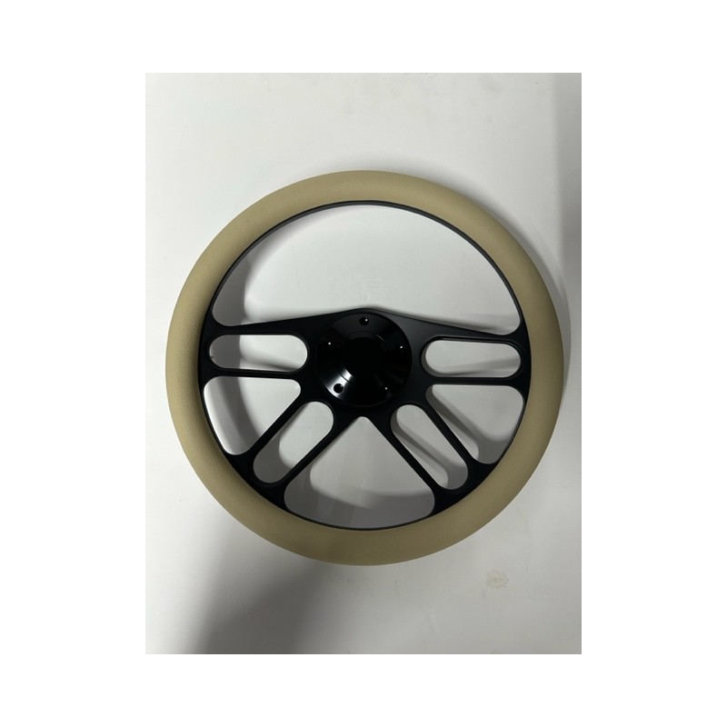 TAN BLACK BILLET 4 SPOKE STEERING WHEEL UNIVERSAL 14" 6 HOLE