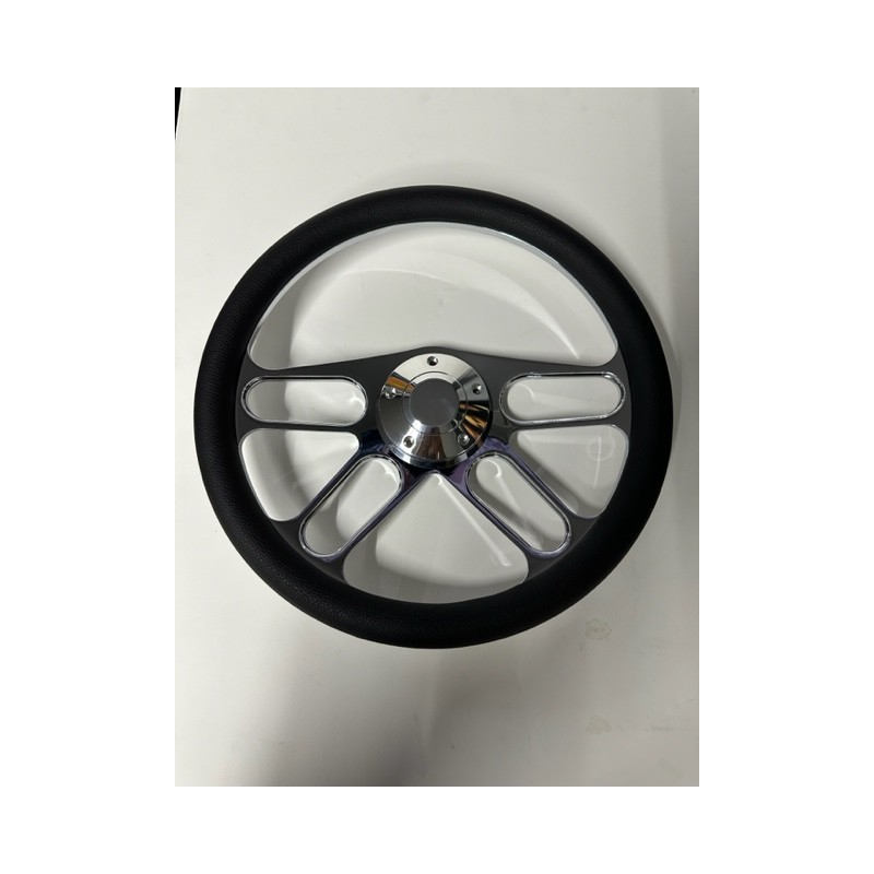CHROME 4 SPOKE BILLET WITH BLACK WRAP UNIVERSAL STEERING WHEEL 6 HOLE 14"