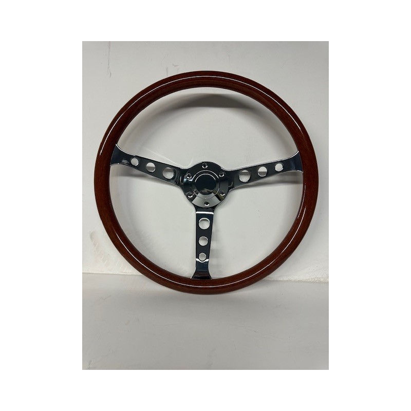 UNIVERSAL WOOD STYLE 15" CHROME 3 SPOKE CIRCLE STEERING WHEEL