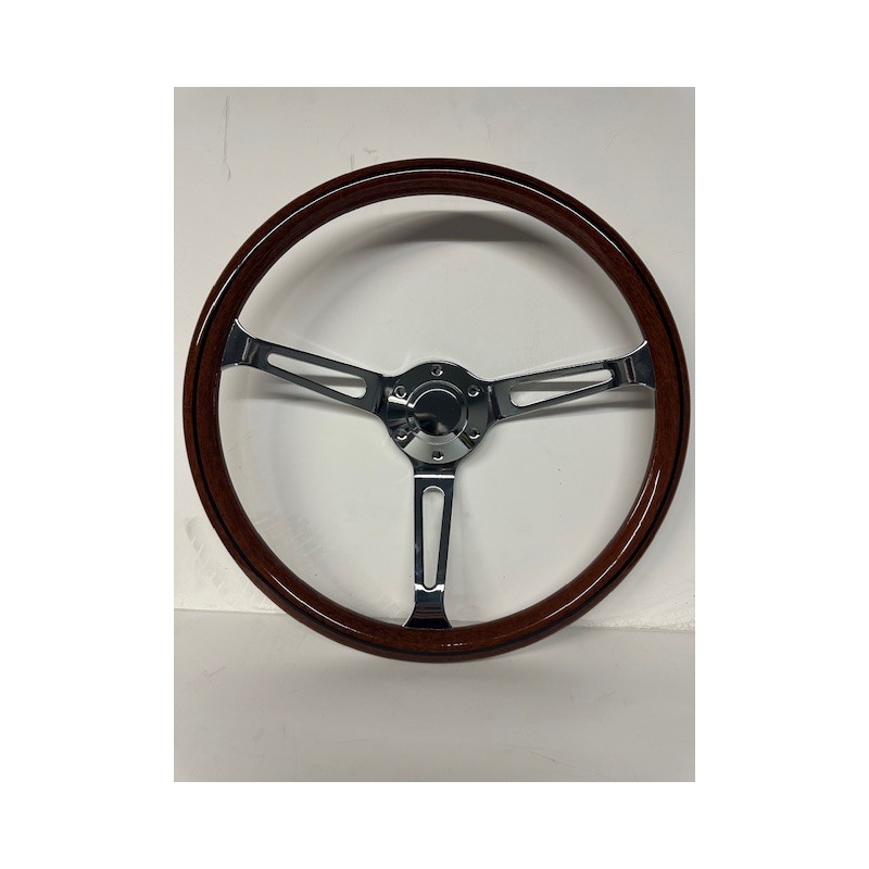 UNIVERSAL 15" WOOD STYLE STEERING WHEEL CHROME 3 SPOKE SLANTED
